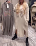 FUNKTIONER Slits: Den eleganta slitsen ger en touch av lockelse och rörelse, vilket skapar en sofistikerad siluett som smickrar din figur. Ruched Detailing: Delikat ruching ger textur och dimension, vilket förstärker klänningens övergripande elegans och tilltalande. Elegant stil: Den här klänningen utstrålar tidlös elegans, vilket gör den lä...