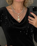 Topp V-Ringning Paillettfylld Sammet Lappverk
