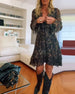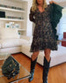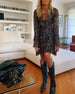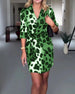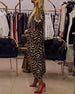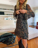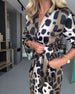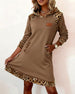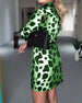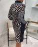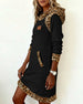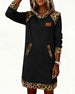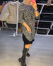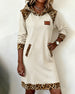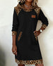 Klänning avslappnad långärmad leopardmönstrad patchwork