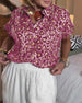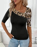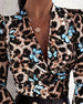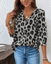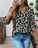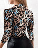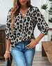 Blus Halvlångärmad Leopardtryck Löst Sittande