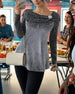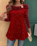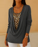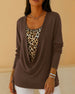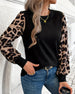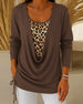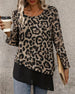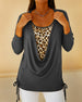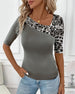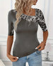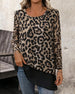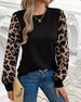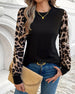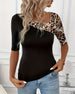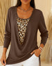Moderiktig leopardmönstrad blus med V-ringad spets med patchwork