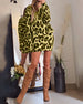 FUNKTIONER: Casual Comfort: Denna klänning erbjuder en lös, bekväm passform, vilket säkerställer att du håller dig stilfull och avslappnad hela dagen. Djärvt leopardtryck: Den här klänningen har ett slående leopardtryck och lägger till en touch av vild elegans till din garderob. Snygg urringning: V-ringningen med en lapelkrage förstärker din...