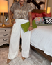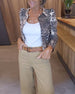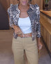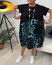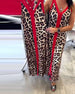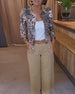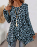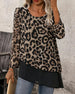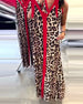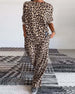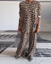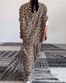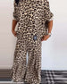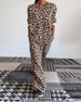 Avslappnad leopardmönstrad ficka med rund hals och breda byxor