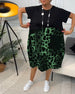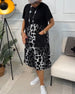 Klänning Lös Rund Hals Kort Ärm Tryckt