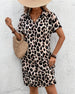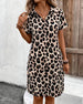 SPECIFIKATIONER Stil: Enkel Material: Bomullsblandningar Klänningstyp: T-shirt Klänning längd: Över knä Urringning: V-hals_V Mönstertyp: Tryckt,Leopard Ärmlängd: Kortärmad Passform typ: Vanlig Säsong: Vår,Sommar Tillfälle: Dagligen Paketet innehåller: 1 x Klänning STORLEKSTABELL(cm) Storlek Byst Längd S 97 95 M 101 96 L 105 97 XL...