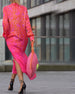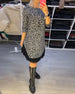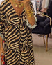 Snygg klänning i leopardmönstrad patchwork med dragkedja