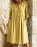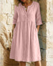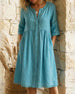 Klänning 100% Bomull Urholkad V-ringning Knapp-Fram