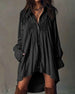 Klänning Kort Ärms Krage Enfärgad Knappar