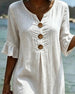 SPECIFIKATIONER Topptyp: Blusar Stil: Enkel Material: 80% Bomull 20% Lin Tillfälle: Dagligen Urringning: Fyrkantig hals Mönstertyp: Enfärgade Typ av ärm: Lykthylsa Ärmlängd: 3/4 ärm Passform typ: Vanlig Säsong: Vår,Sommar Detaljer: Knappar Paketet innehåller: 1 x Blus STORLEKSTABELL(cm) Storlek Byst Längd S 97 68 M 101 69.5 L 105...