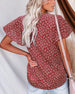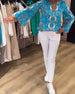 Tryckt avslappnad topp med djupt V