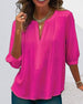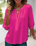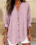 Avslappnad v-ringad enfärgad blus med knappar