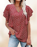 Kortärmad blus med V-ringad och blomtryck
