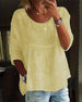SPECIFIKATIONER Topptyp: Toppar Stil: Elegant Material: Bomullsblandningar, Spets Tillfälle: Dagligen Urringning: V-hals Mönstertyp: Enfärgade Typ av ärm: Vanlig ärm Ärmlängd: 3/4 ärm Passform typ: Vanlig Säsong: Vår, Sommar, Höst Detaljer: Lappverk, Urgröpande Paketet innehåller: 1 x Topp STORLEKSTABELL(cm) Storlek Byst Läng...