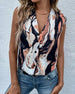 SPECIFIKATIONER Topptyp: Väst Stil: Enkel Material: Chiffong Tillfälle: Dagligen Urringning: V-hals_V Mönstertyp: Tryckt Ärmlängd: Ärmlös Passform typ: Vanlig Säsong: Sommar Detaljer: Knappar Paketet innehåller: 1 x Linne STORLEKSTABELL(cm) Storlek Byst Längd Midjeomkrets S 94 64 88 M 99 65 93 L 104 66 98 XL 109 67 103 2...