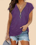 EGENSKAPER Denna kortärmade t-shirt med V-ringad är en smickrande passform för vardagsbruk och ser stilig ut. All matchande stil - passar att kombinera med shorts, jeans, leggings, fritidsbyxor eller kjolar, etc. SPECIFIKATIONER Stil: Casual Material: Bomull Halsringning: V-ringad Ärmar: Korta ärmar Mönster: Enfärgade Detaljer: Dragkedj...